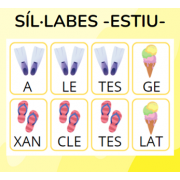Este material consta de 30 tarjetas de vocabulario relativo al otoño. En la parte de delante hay una imagen con tres letras para escoger la opción que corresponde a la letra inicial de la imagen. En la parte de atrás está la palabra escrita con la inicial de otro color para que se pueda comprobar la respuesta.