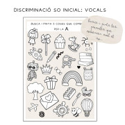 Material GRATUÏT. SO INICIAL Aquest material consta de 22 tires fonològiques en la que els nostres alumnes hauran de discriminar el so inicial. Sempre trobarem que entre 4 opcions hi ha 3 que comencen amb el so i una imatge que és intrusa. Ho podem treballar sota dues consignes: 1. Troba ( i encercla amb un rotulador, posa una pinça...) totes les paraules que comencin amb "x" però vigila que hi ha una que no comença amb el so. 2. Busca quina és la imatge intrusa ! ( i encercla-la amb un rotulador, posa una pinça...) Com sempre, aquesta proposta la podem treballar en gran grup i fer-ho més guiat o pot ser una proposta per treballlar de forma autónoma ell sols quan ja tenen més consolidada la discriminació auditiva a nivell de so inicial.