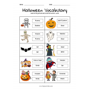 24 tarjetas con vocabulario de Halloween para elegir entre 3 palabras y marcarlas con una pinza.