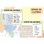 Material en fitxes per a llegir paraules en lletra de pal. Cal imprimir, retallar i plastificar les lupes per tal que l’infant l’utilitzi per a encerclar la paraula llegida.